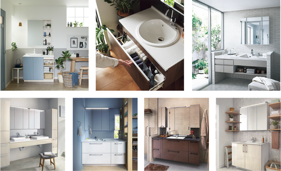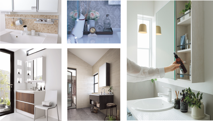 家族内でも髪を洗う方や、髭を剃る方、化粧や歯磨きなど様々な用途で使用されるスペースです。小さなお子様からご高齢の方まで家族全員が安心して便利に使うこと出来る洗面化粧台をご提案いたします。